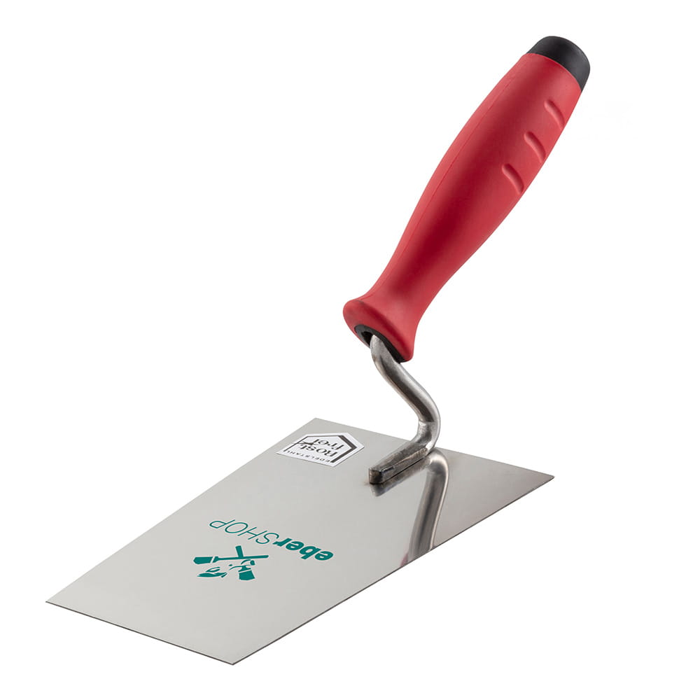 Die Stuckateur-Gipserkelle hat ein rostfreies Stahlblatt und ist konisch geschmiedet. Die Stuckateurkelle verfügt zudem über eine Schwanenhalsangel und einen weichen Softgriff.